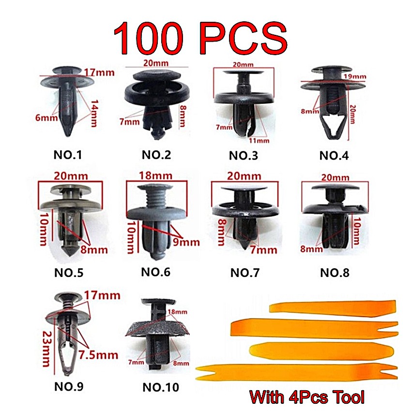 100pcs Car Bumper Clip Fastener Trim Kit Car Push Pin Rivet Fender Shopee Malaysia